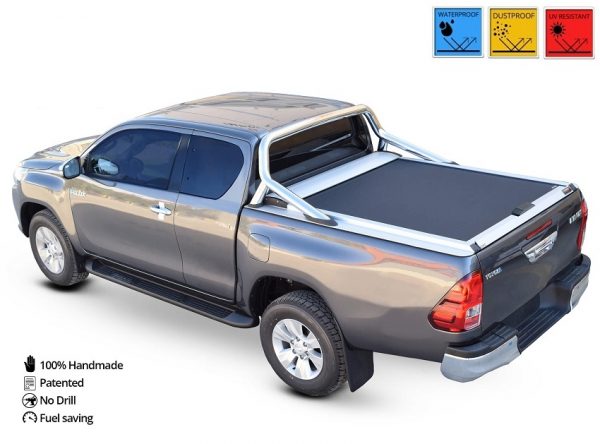 Questa copertura cassone in alluminio è adatta per Toyota Hilux REVO 2016 PICK UP Space Cab con rollbar originale OEM, cabina singola, SOT 13171, Impermeabile contro la pioggia