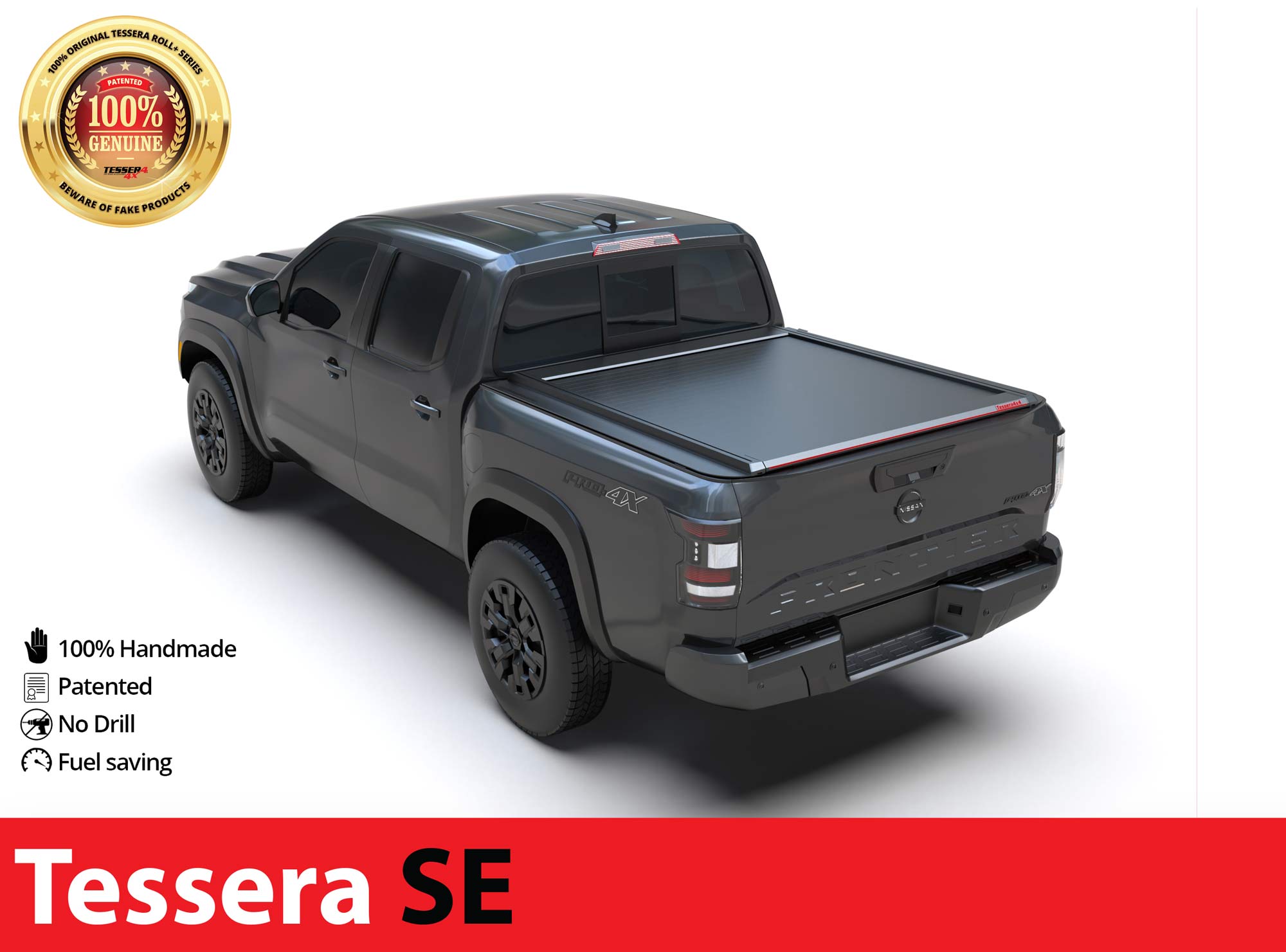 Nuova generazione, copertura cassone Tessera SE con 5 brevetti, disponibile per Nissan Frontier 2022+ Long Bed (6,1′ feet) doppia cabina double cab (D/C). Design rivoluzionario, versatilità, durata, 100% fatto a mano.