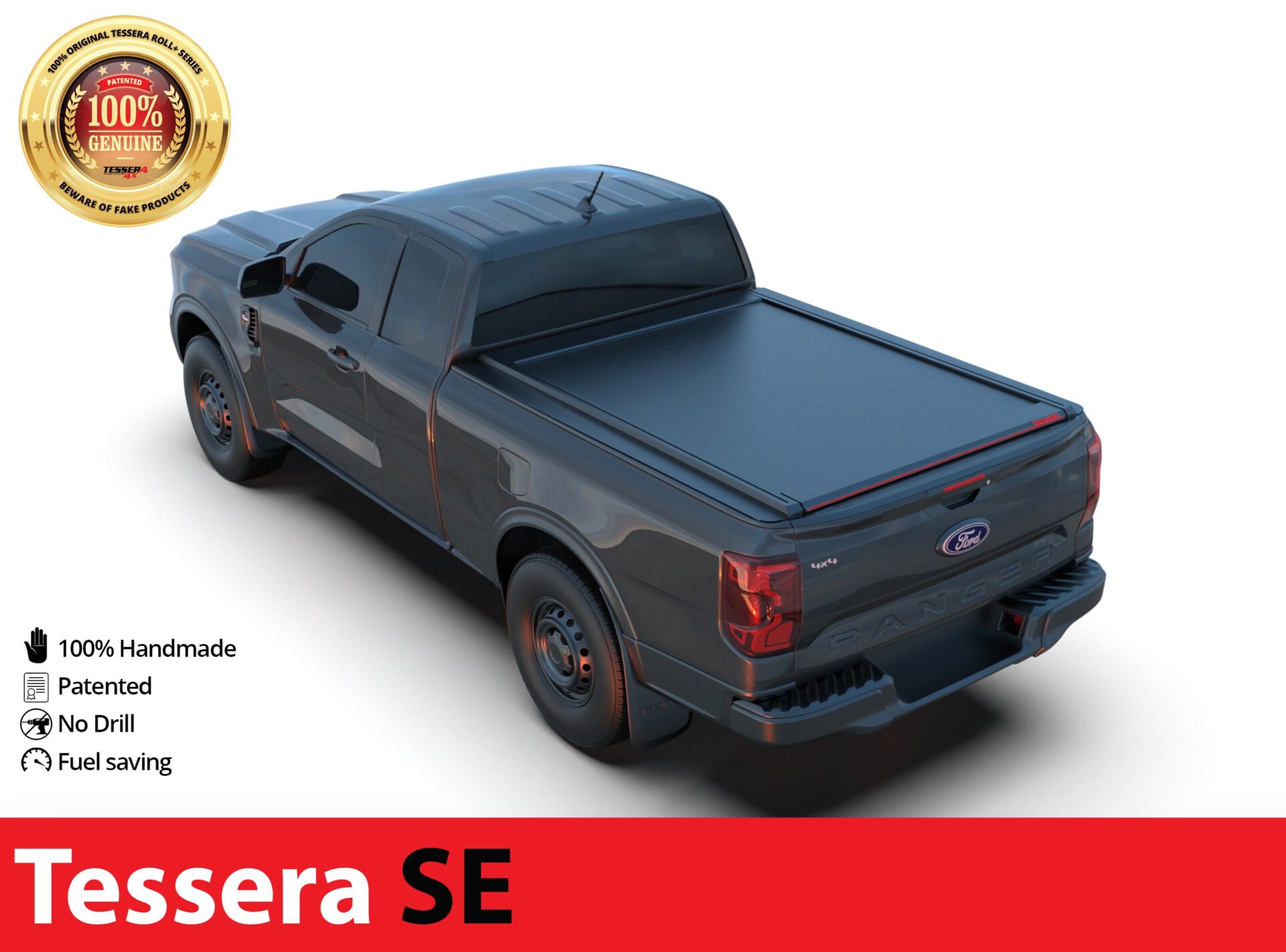 Neue Generation, Laderaumabdeckung Tessera SE mit 5 Patente, erhältlich für Ford Ranger T6.2 (P703) 2023+ extrakabine / space cab.