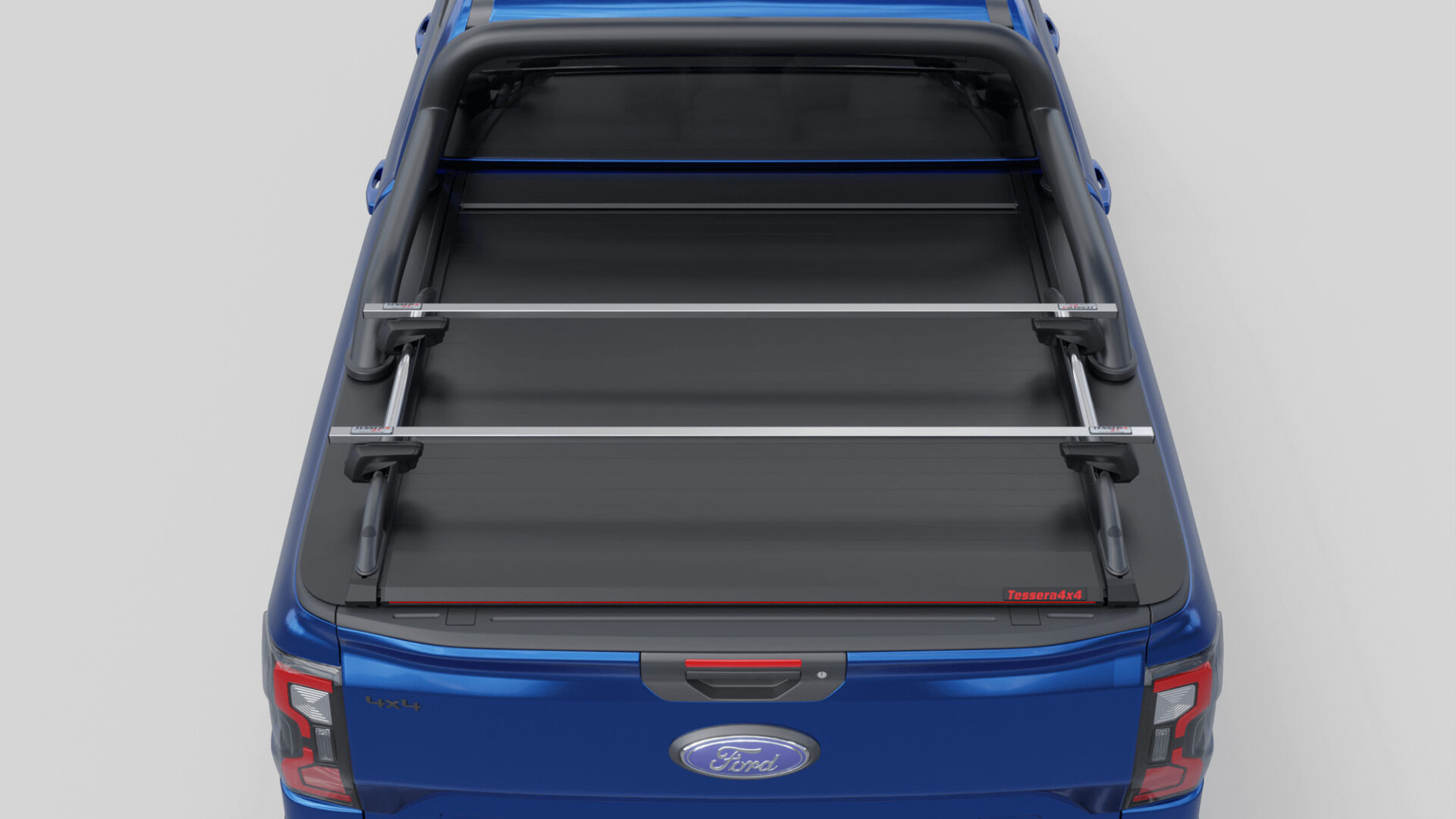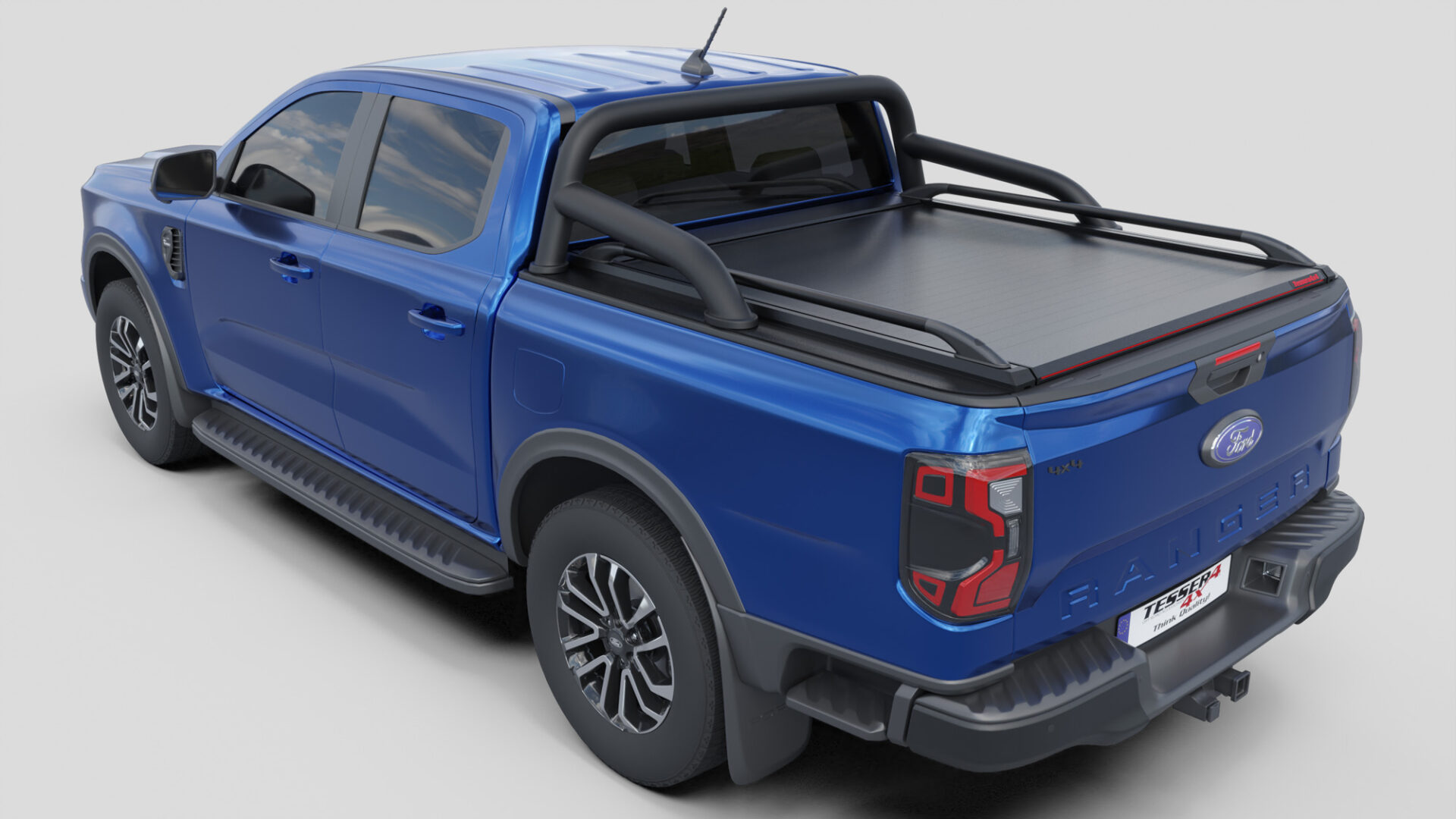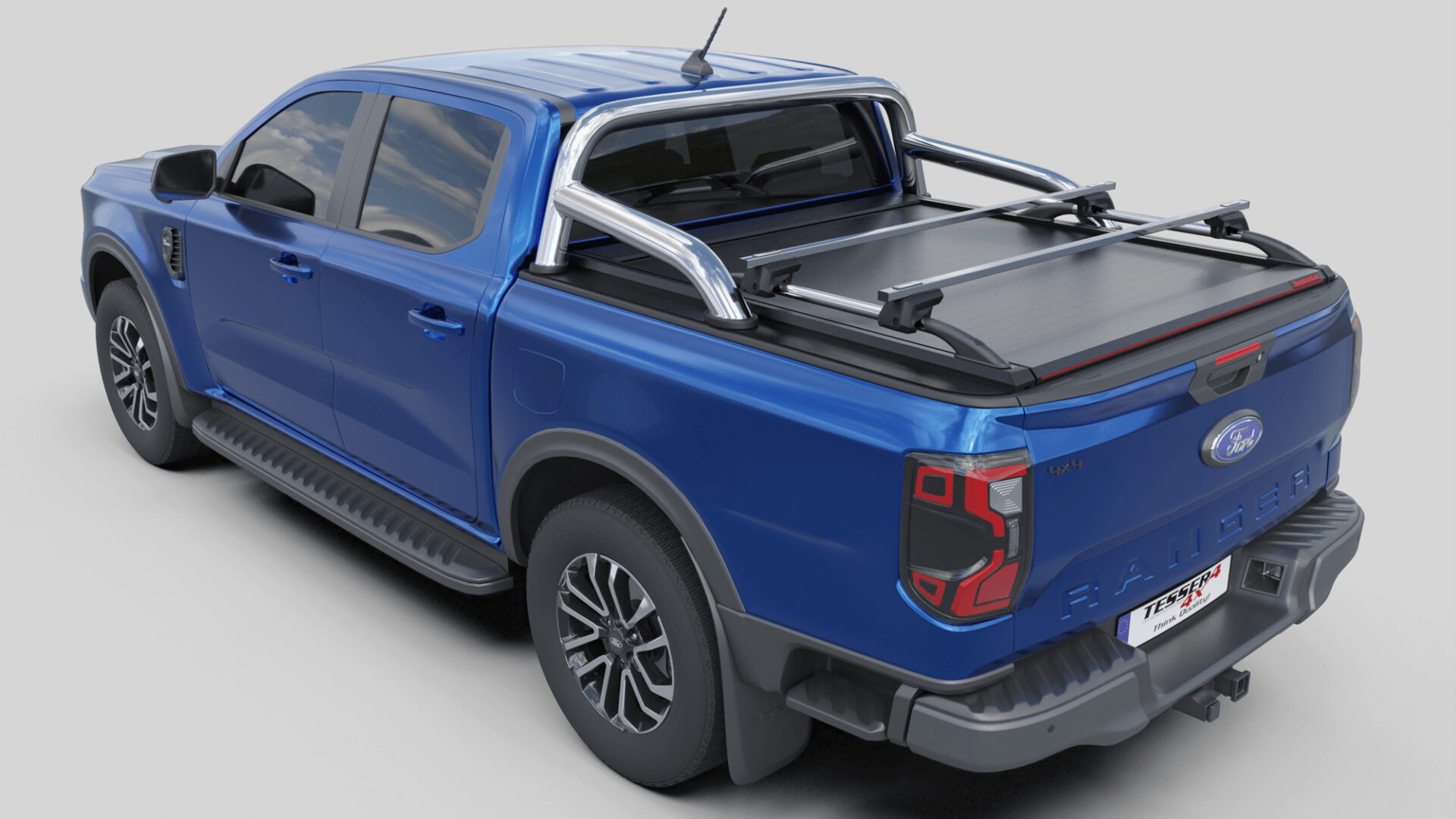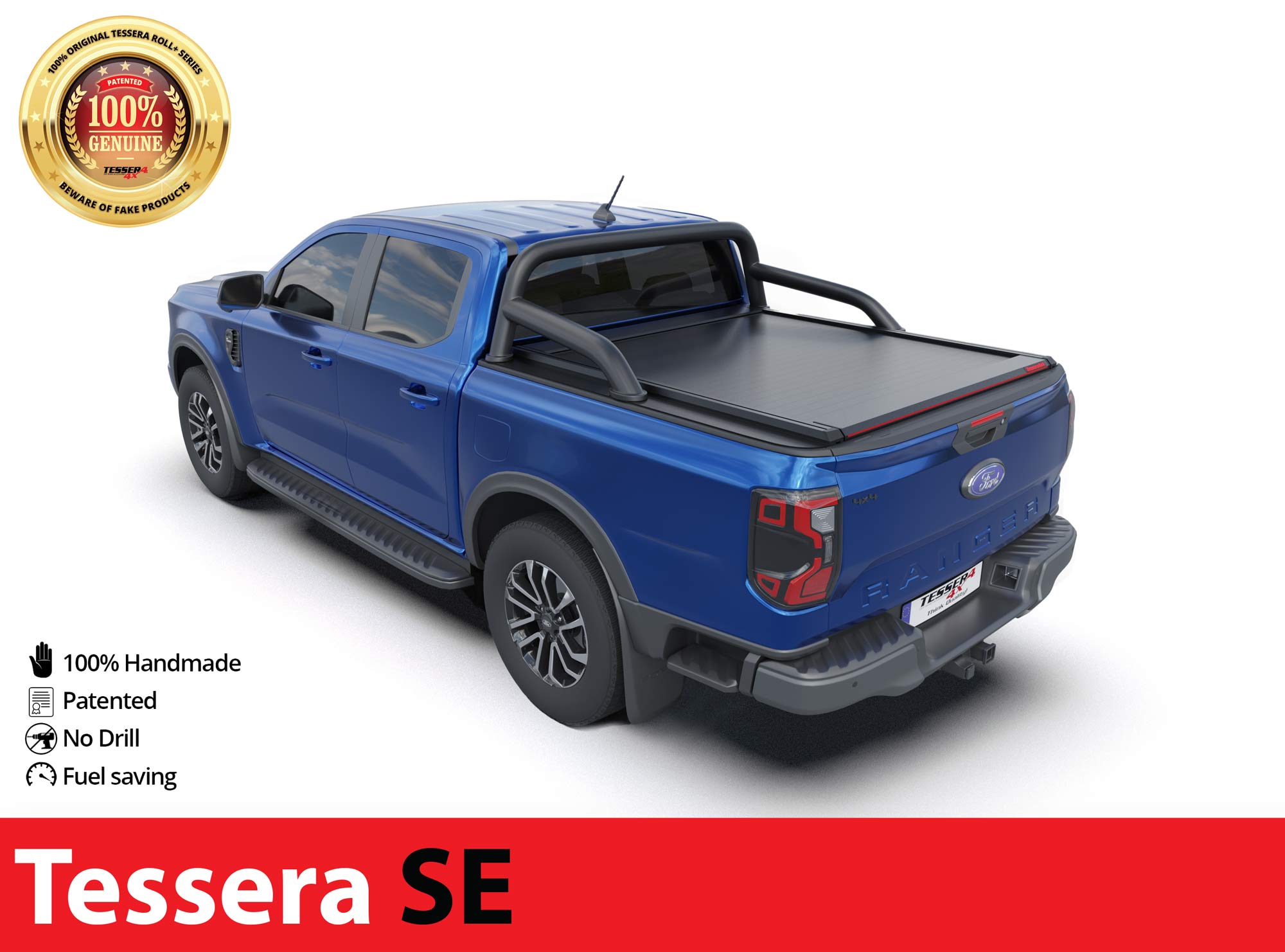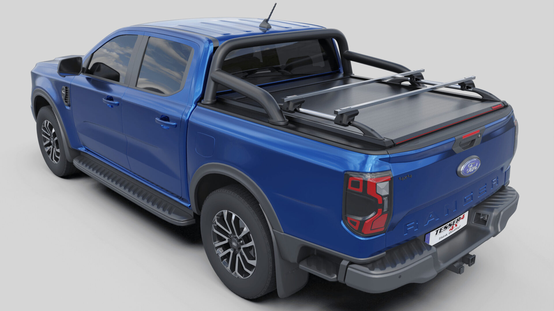 Neue Generation, Laderaumabdeckung Tessera SE mit 5 Patente, erhältlich für FORD Ranger T6.2 P703 2023+ doppelkabine kompatibel mit dem OEM-Überrollbügel von Ford.