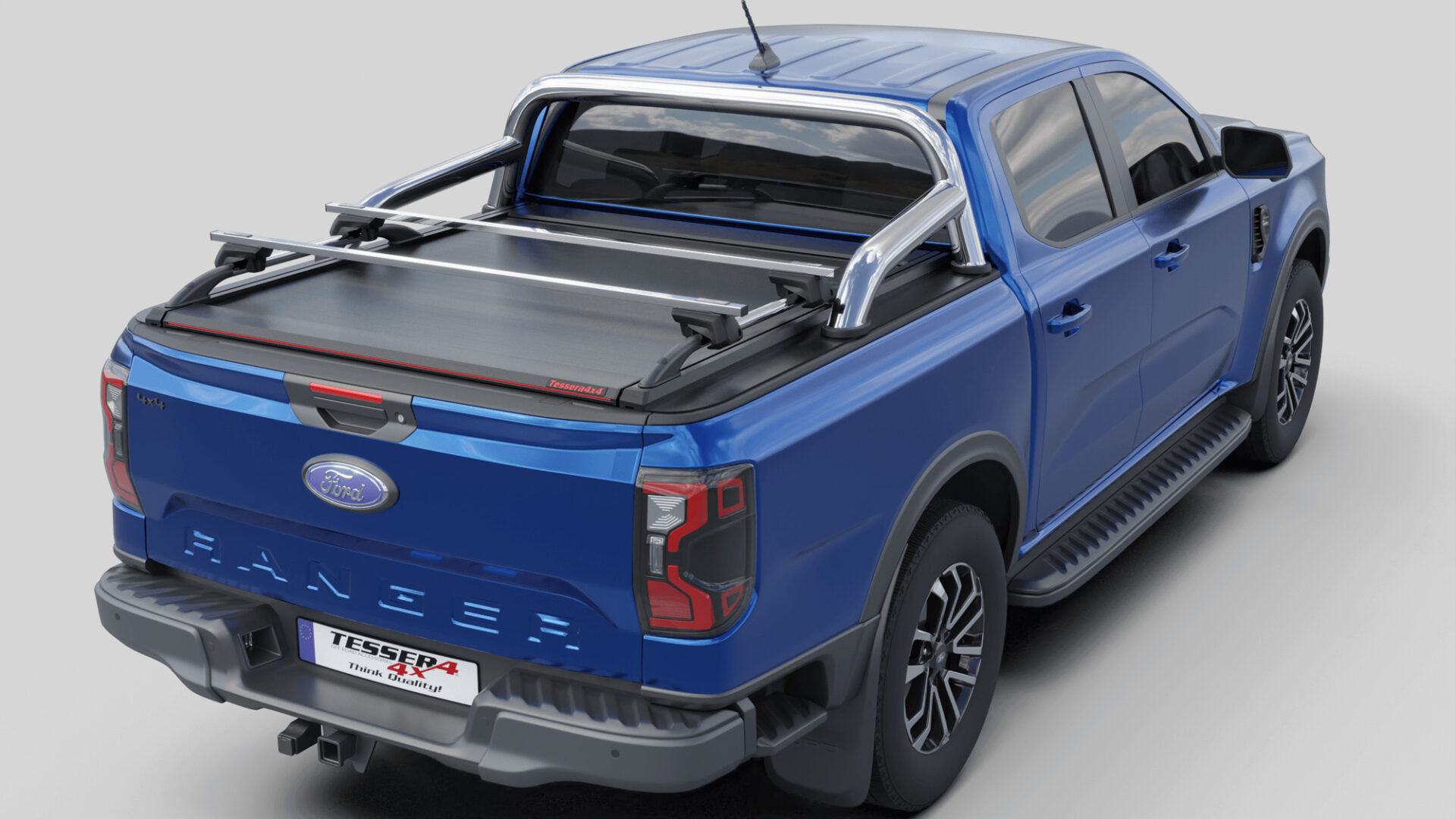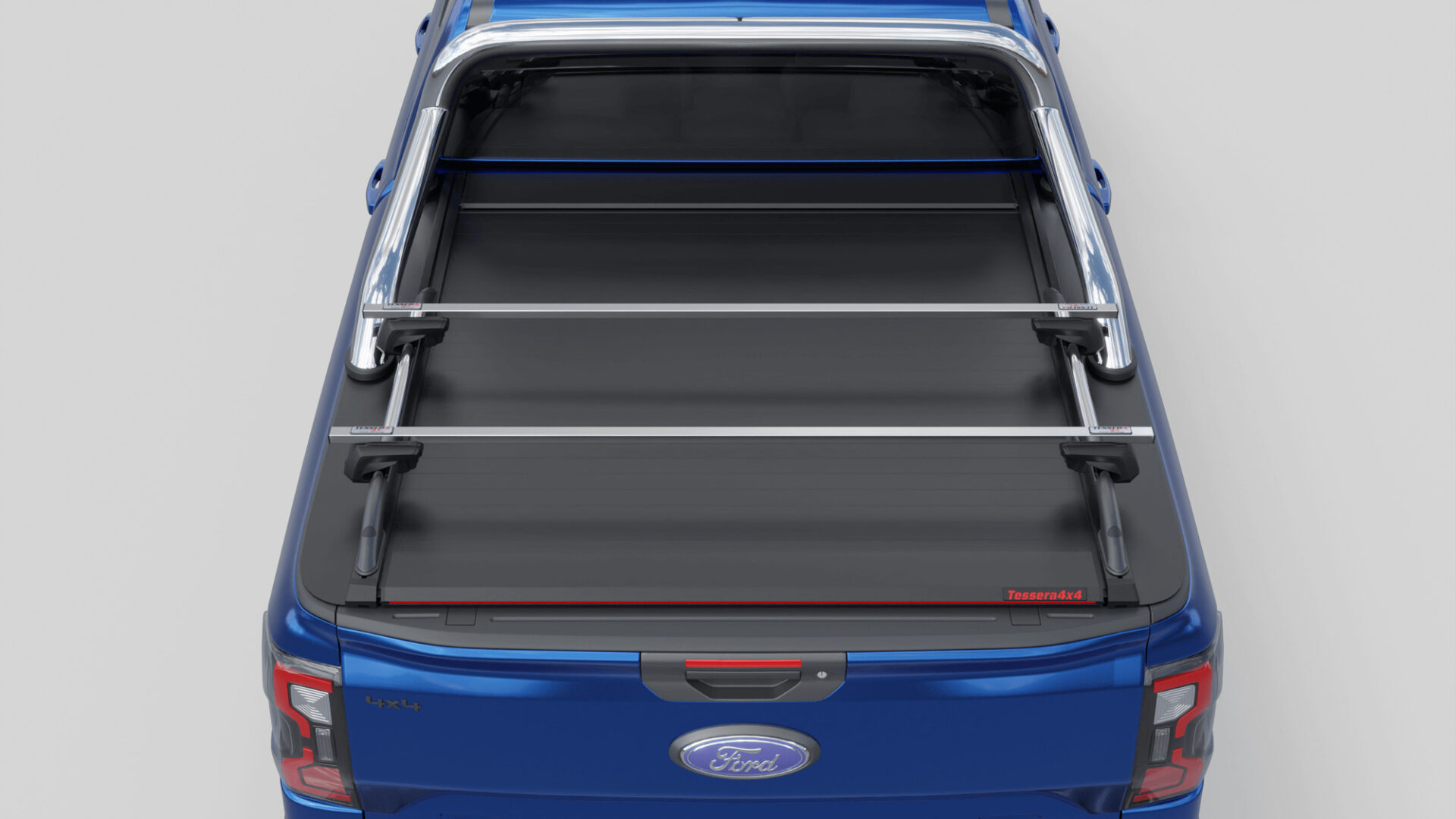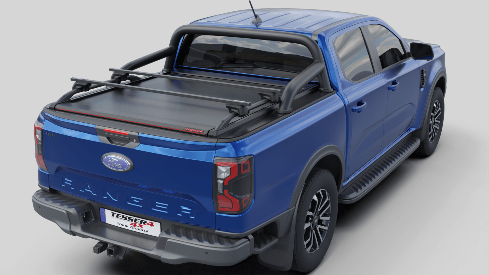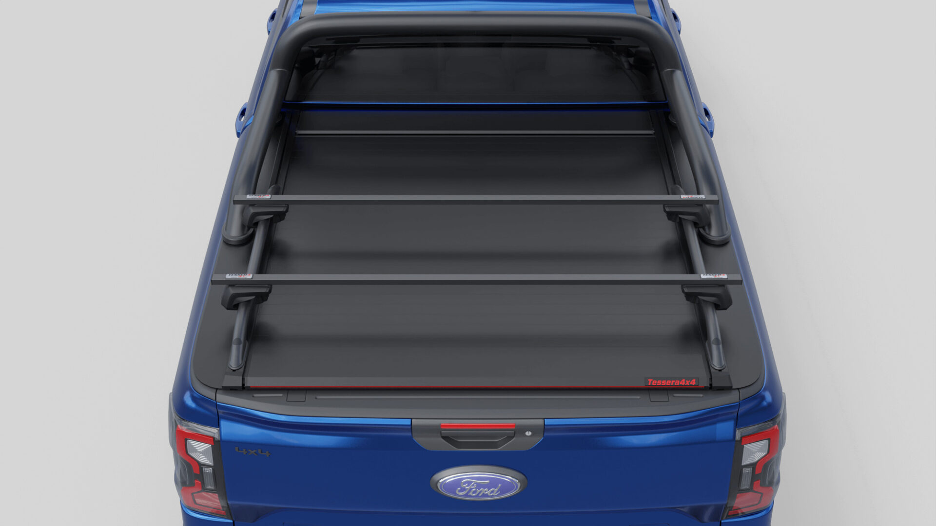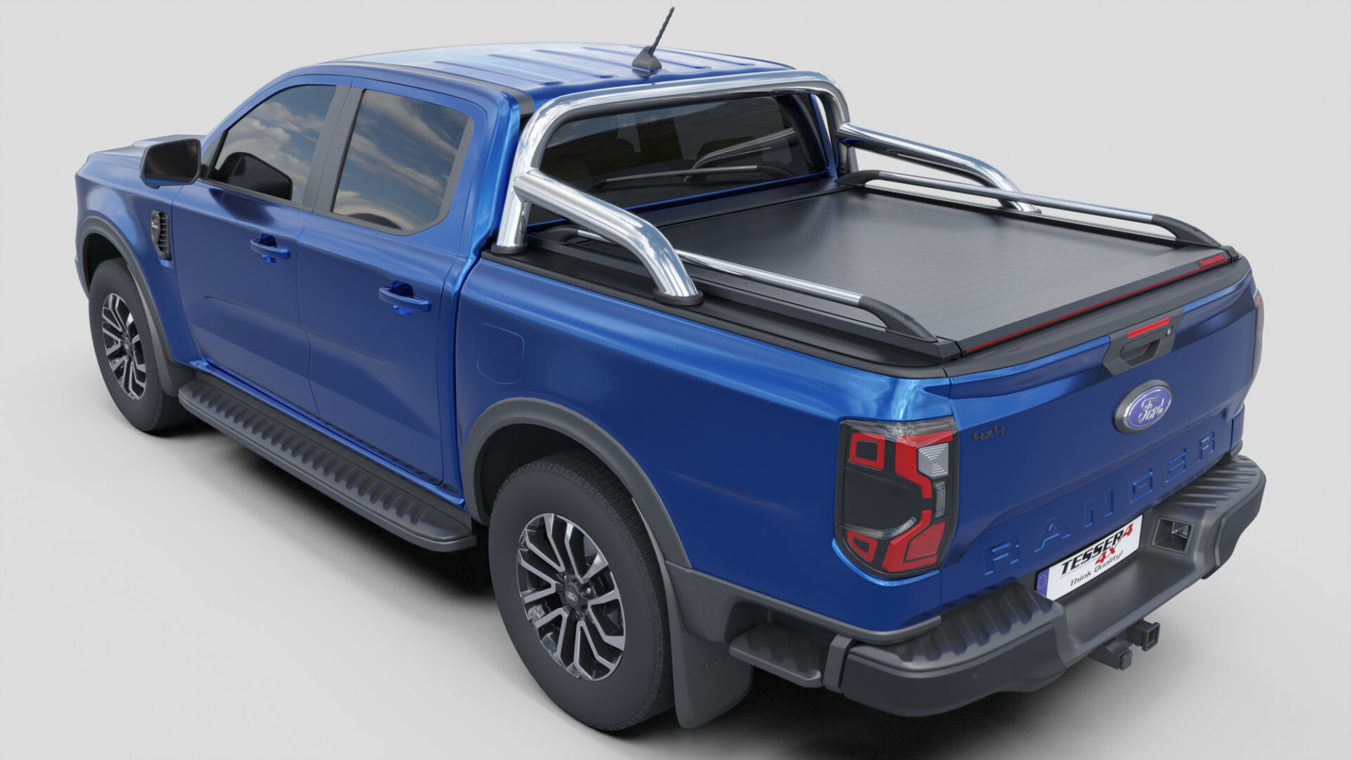 Neue Generation, Laderaumabdeckung Tessera SE mit 5 Patente, erhältlich für FORD Ranger T6.2 P703 2023+ doppelkabine kompatibel mit dem OEM-Überrollbügel von Ford.