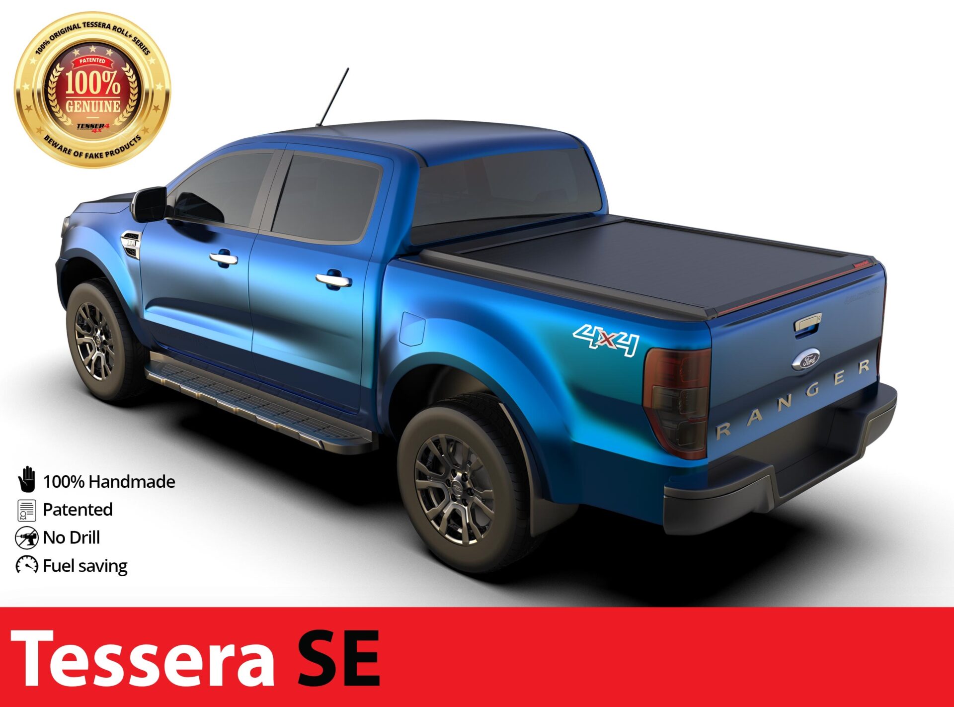 Neue Generation, Laderaumabdeckung Tessera SE mit 5 Patente, erhältlich für Ford Ranger XL XLT double cab 2012+ (T6) & 2016+ (T7) & 2019+ (T8) doppelkabine.