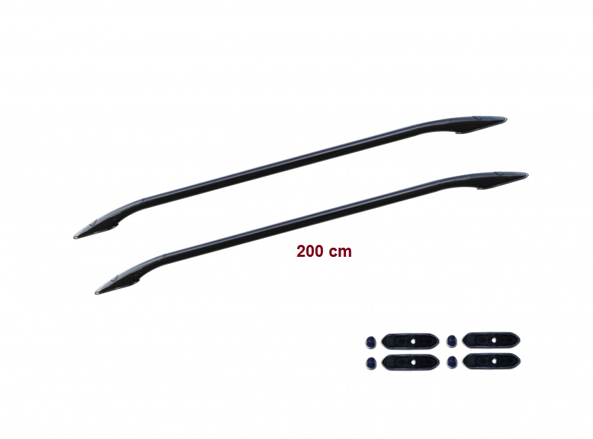 Neue Laderaumreling Sport Design 200 cm, in Black matt (Pulverbeschichtung), aus Edelstahlrohr ᴓ 33, Ecken aus verstärktem gegossenem Duralumin, spezielle Enden der Sockeln aus Gummi und auch spezielle Kunststoff Stöpsel für die Schrauben. Erweiterbar mit Dachträger Grundsystem von Tesser4x4.