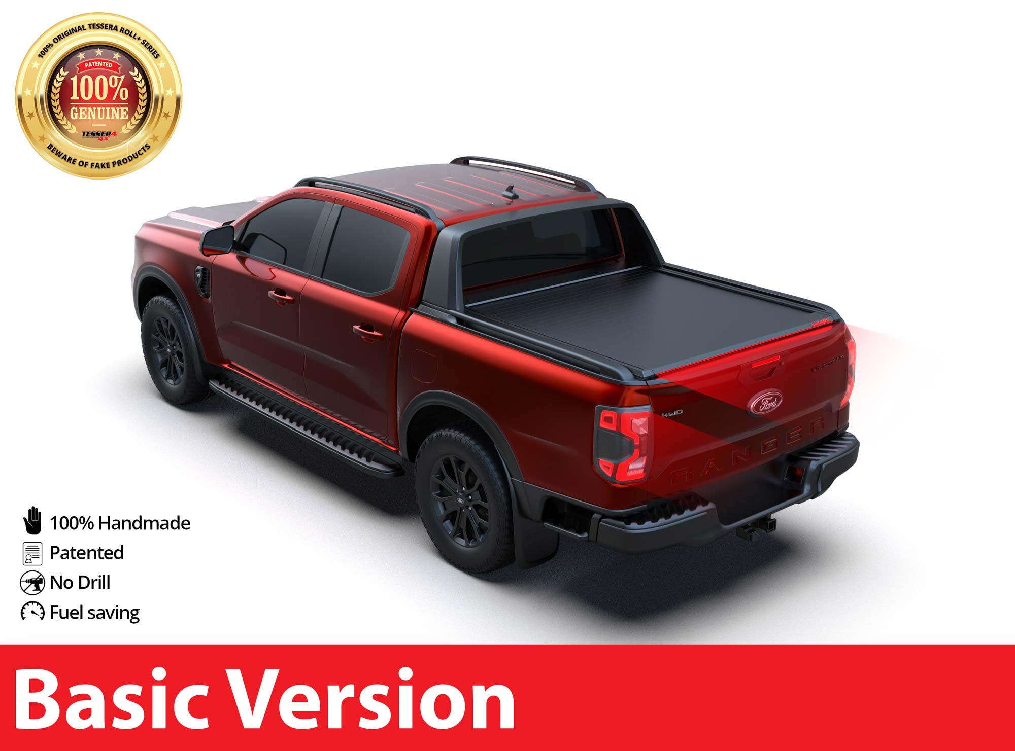Diese Laderaumabdeckung “Basic” ist passend für FORD Ranger T6.2 P703 WILDTRAK / RAPTOR 2023+ Doppelkabiner, TESS 14080