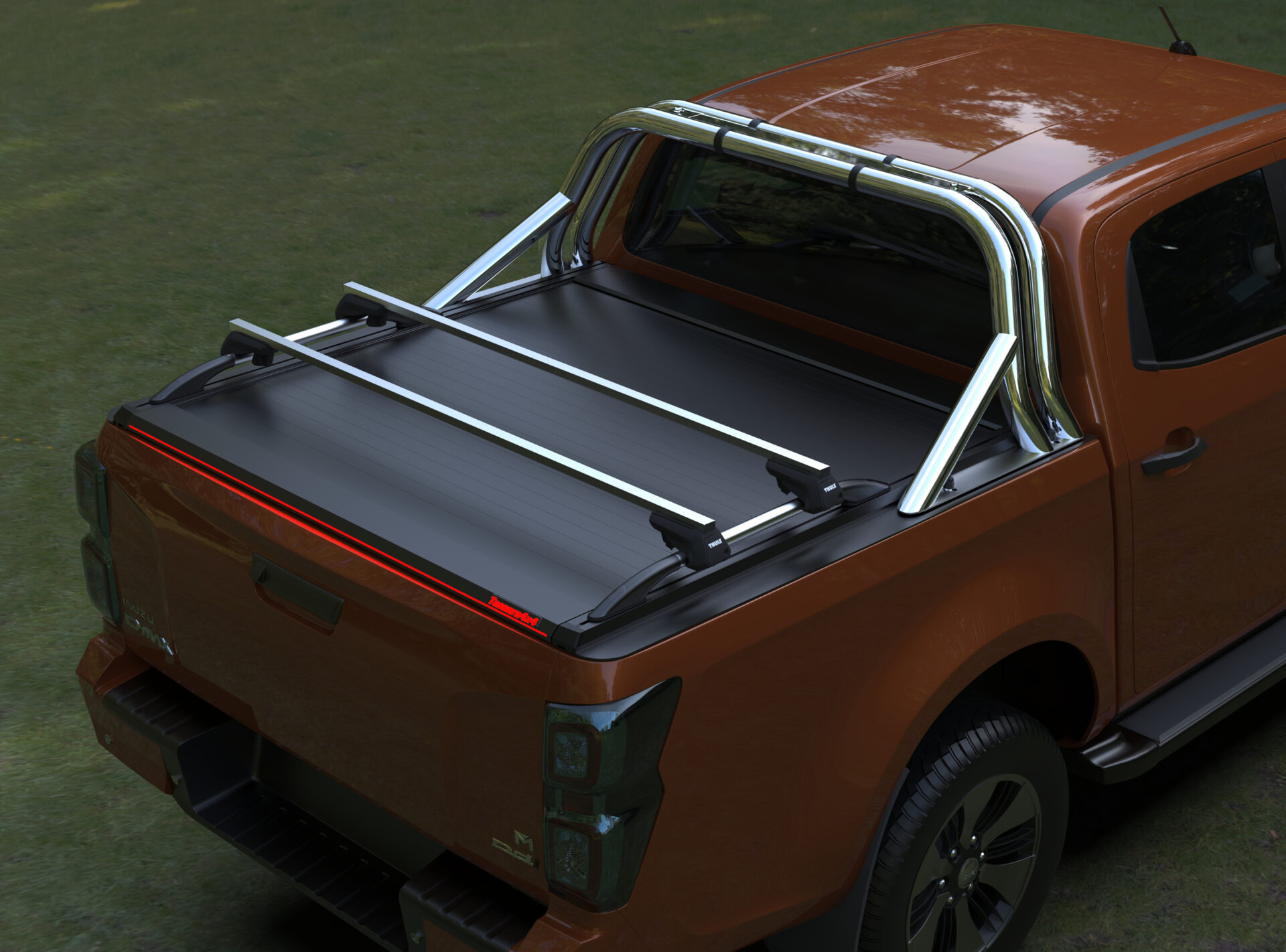 Neue Generation, 8-patentierter “Tessera Roll+” Aluminium- Laderaumrollo, erhältlich für Isuzu D-Max 2021+ doppelkabine (double cab).