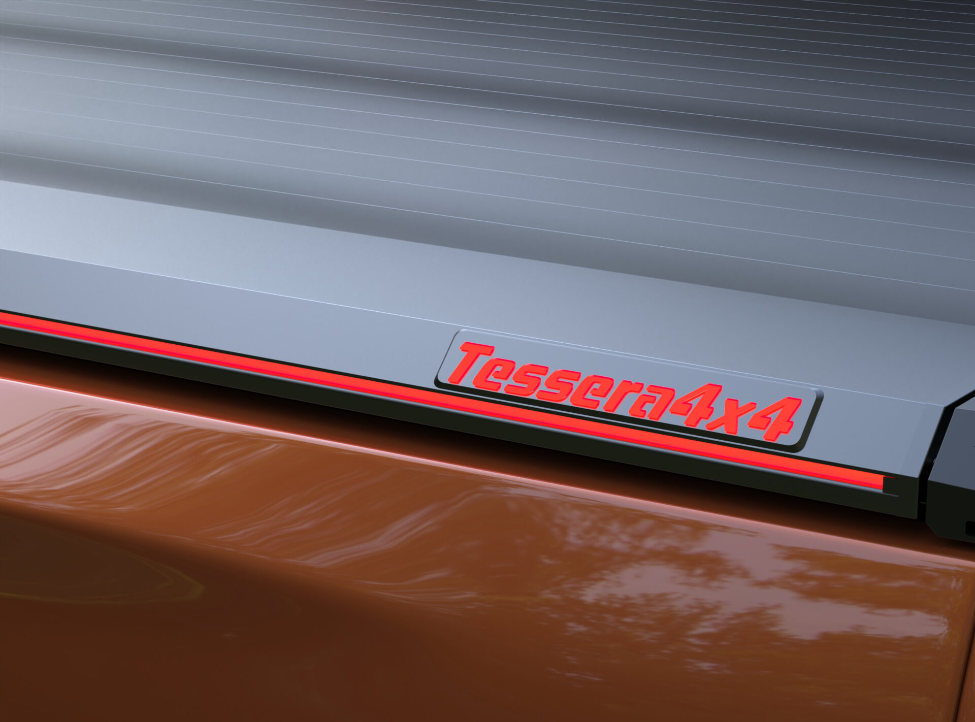 - Ein beweglicher, durchgehender weißer LED-Lichtbalken, der sich im Inneren der rollenden Endleiste befindet und den Schwerpunkt des Kofferraumbereichs aufhellt und hervorhebt (unabhängig von der Ladung im Kofferraumbereich).